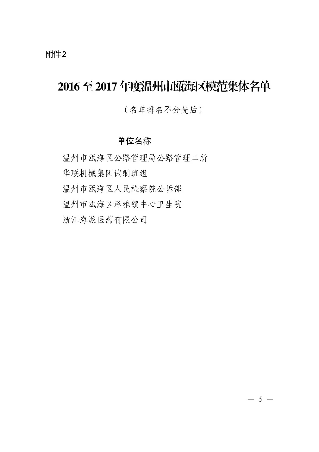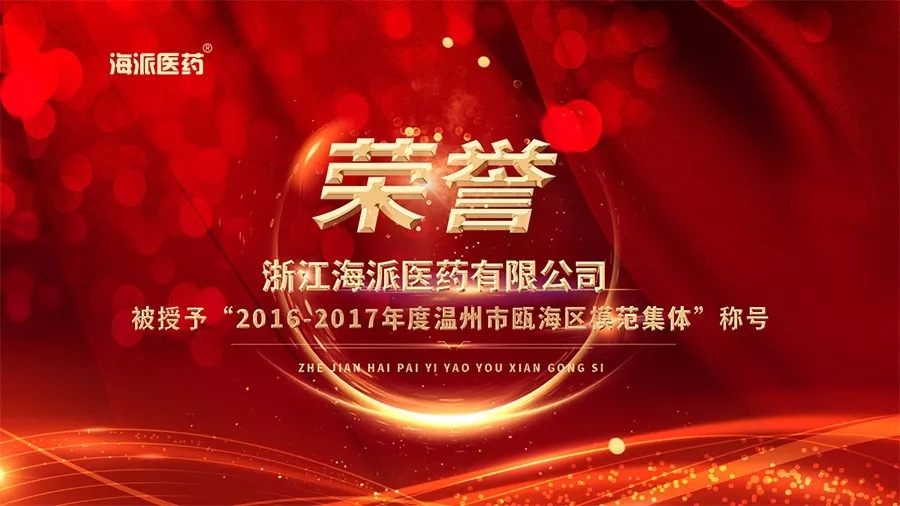 海派醫(yī)藥被授予“2016-2017年度溫州市甌海區(qū)模范集體”稱(chēng)號(hào)