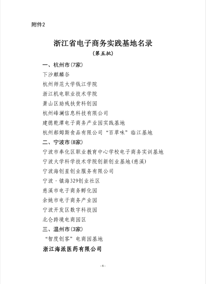 其中共有41家單位列入《浙江省電子商務培訓機構名錄》,47家單位列入《浙江省電子商務實踐基地名錄》。浙江海派醫(yī)藥有限公司作為溫州市列入的3家單位之一被列入《浙江省電子商務實踐基地名錄》。