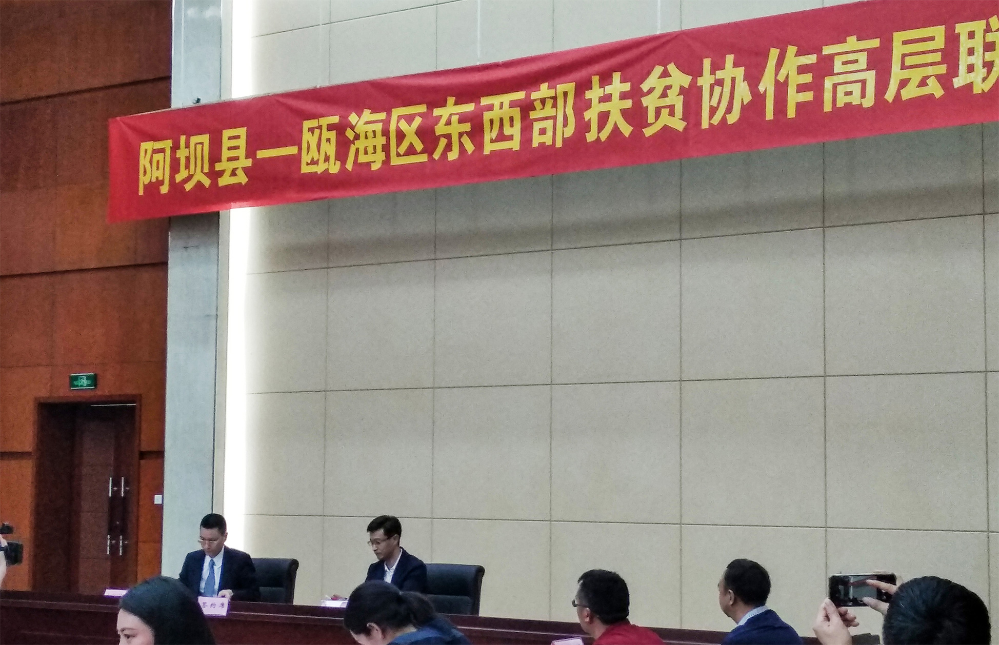 5月9日下午,四川省阿壩縣黨政代表團來甌海考察,共商發(fā)展大計。雙方召開阿壩縣—甌海區(qū)東西部扶貧協(xié)作高層聯(lián)席會議,并簽訂產(chǎn)業(yè)項目合作框架協(xié)議、消費扶貧框架協(xié)議。