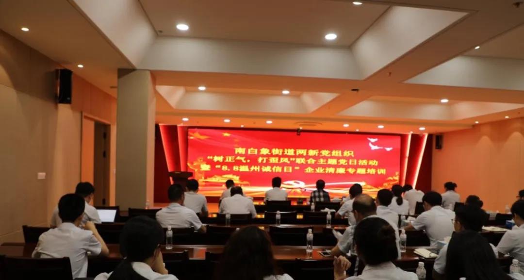 正值“八八溫州誠(chéng)信日”來(lái)臨之際,為切實(shí)加強(qiáng)公司干部及員工的誠(chéng)信清廉意識(shí),持續(xù)向企業(yè)發(fā)展注入誠(chéng)信廉潔正能量,深化思想預(yù)防工作,維護(hù)風(fēng)清氣正的工作環(huán)境。8月8日上午,海派醫(yī)藥黨支部聯(lián)合南白象街道黨工委以及轄區(qū)各兩新組織,開展“樹正氣、打歪風(fēng)”聯(lián)合主題黨日活動(dòng)暨海派醫(yī)藥“八八誠(chéng)信清廉周”清廉企業(yè)專題培訓(xùn),集中學(xué)習(xí)習(xí)近平總書記在企業(yè)家座談會(huì)上講話精神和“樹正氣、打歪風(fēng)”工作要求。