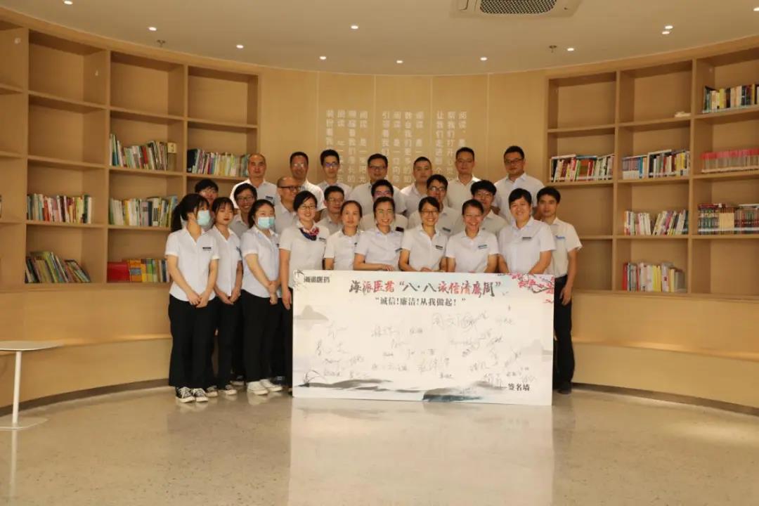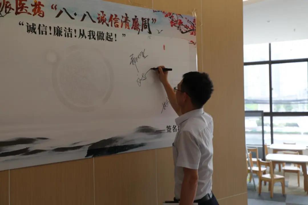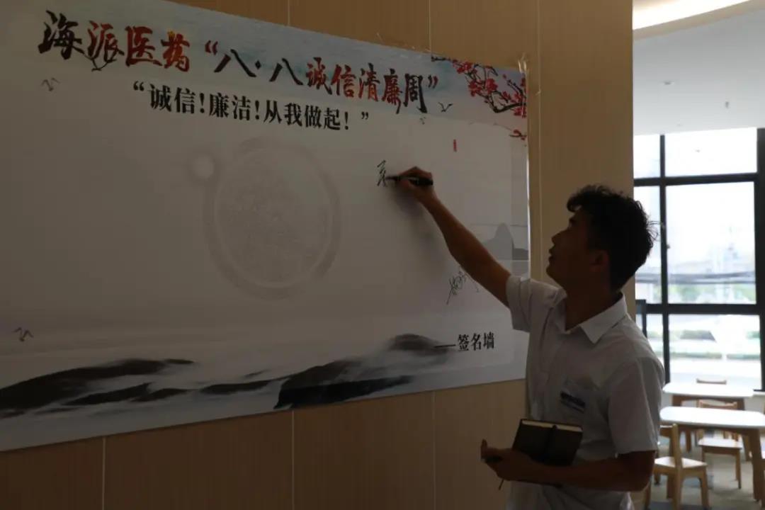 會(huì)議最后,海派醫(yī)藥職工開展重溫入職宣誓儀式,并紛紛在“誠(chéng)信!廉潔!從我做起!”簽字墻前簽名,莊重地許下對(duì)誠(chéng)信清廉的承諾。