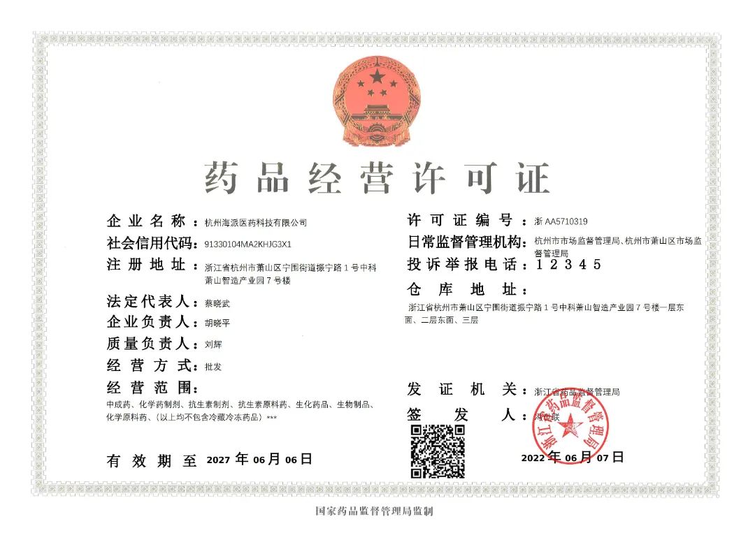 6月7日,經(jīng)杭州市市場監(jiān)管局現(xiàn)場驗(yàn)收檢查,海派醫(yī)藥集團(tuán)下屬子公司——杭州海派醫(yī)藥科技有限公司,正式取得了由浙江省藥品監(jiān)督管理局頒發(fā)的《藥品經(jīng)營許可證》。標(biāo)志著海派醫(yī)藥“雙總部”模式的正式落地。