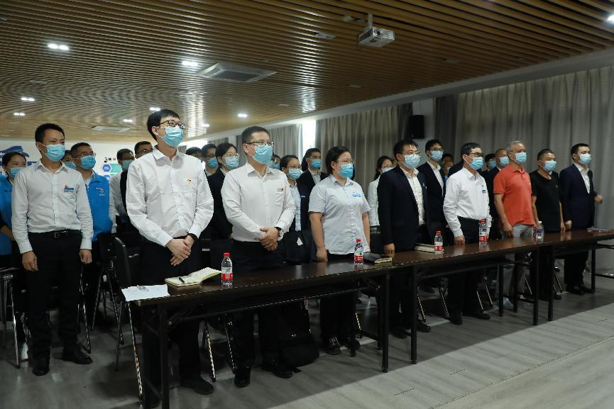 10時許,當(dāng)雄壯的《義勇軍進行曲》在人民大會堂奏響時,海派醫(yī)藥收看現(xiàn)場也一片莊嚴(yán)。大家集體起立,齊唱國歌,并為已故老一輩無產(chǎn)階級革命家和革命先烈默哀。