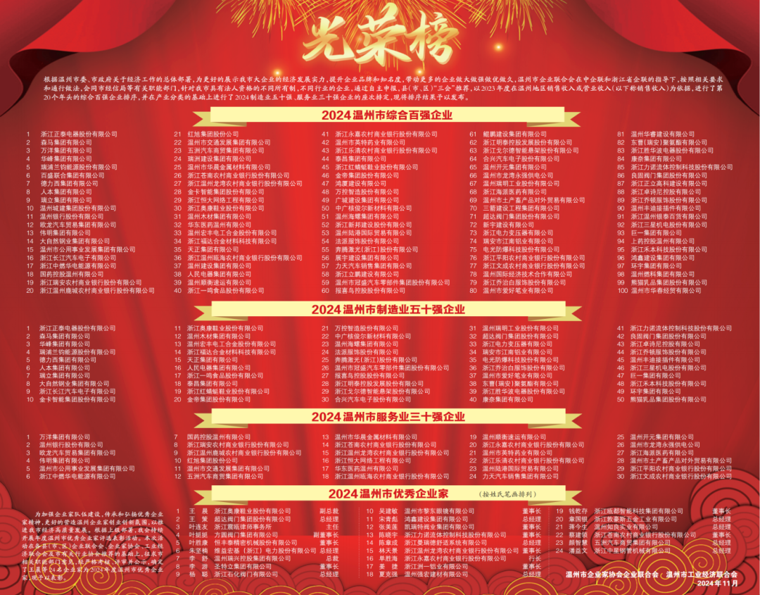 海派醫(yī)藥獲評2024溫州市綜合百強企業(yè)、服務業(yè)三十強企業(yè)榮譽稱號。